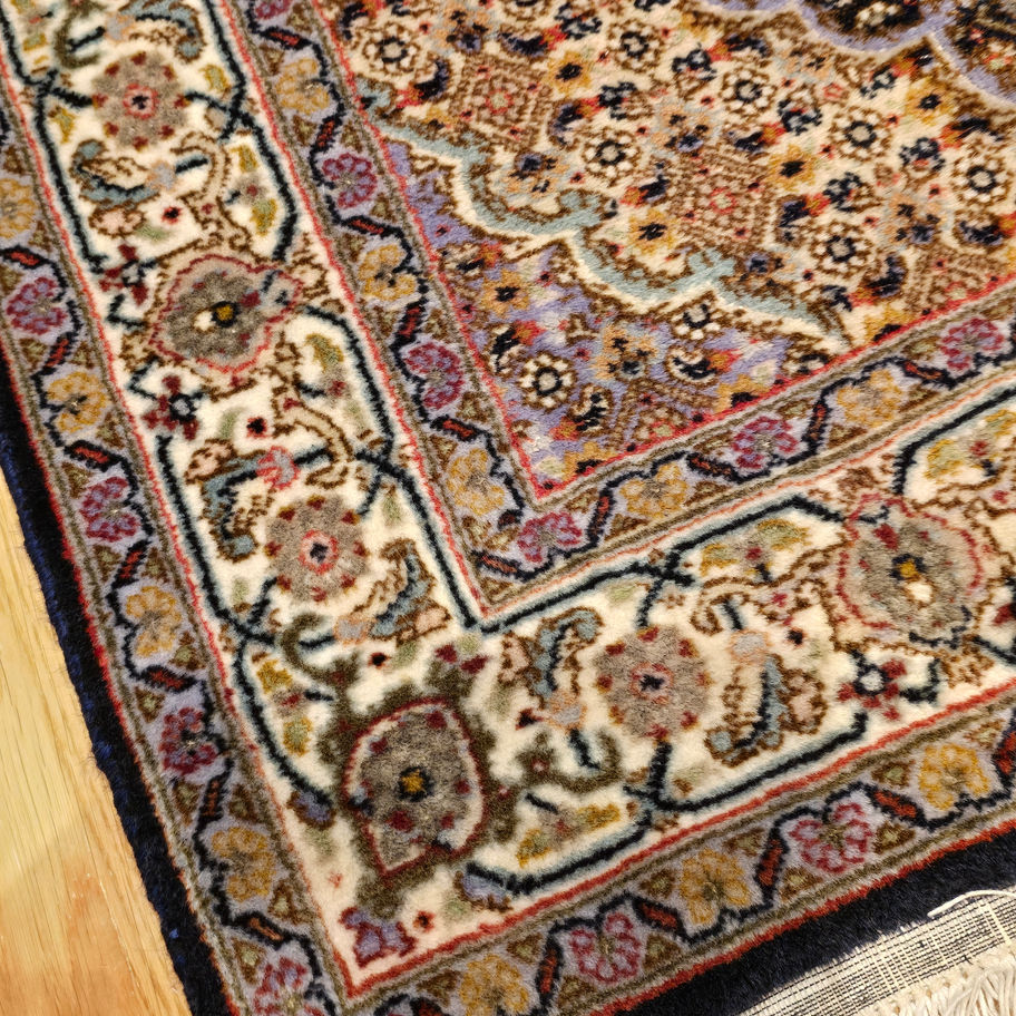 Dette fint vævede persiske Tabriz-tæppe har det klassiske Mahi- (Herati) mønster – et af de mest anerkendte og tidløse mønstre inden for persisk tæppekunst.